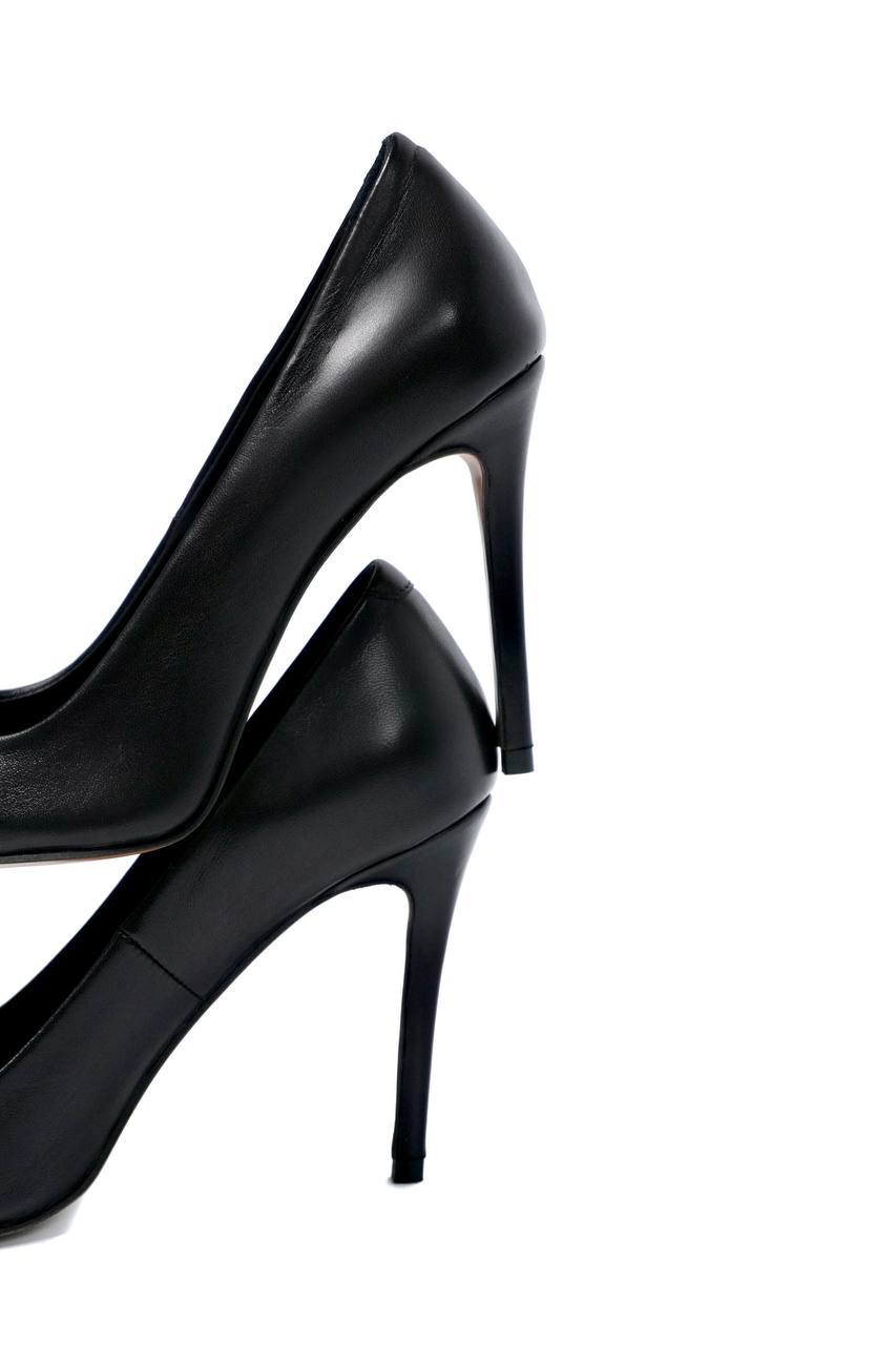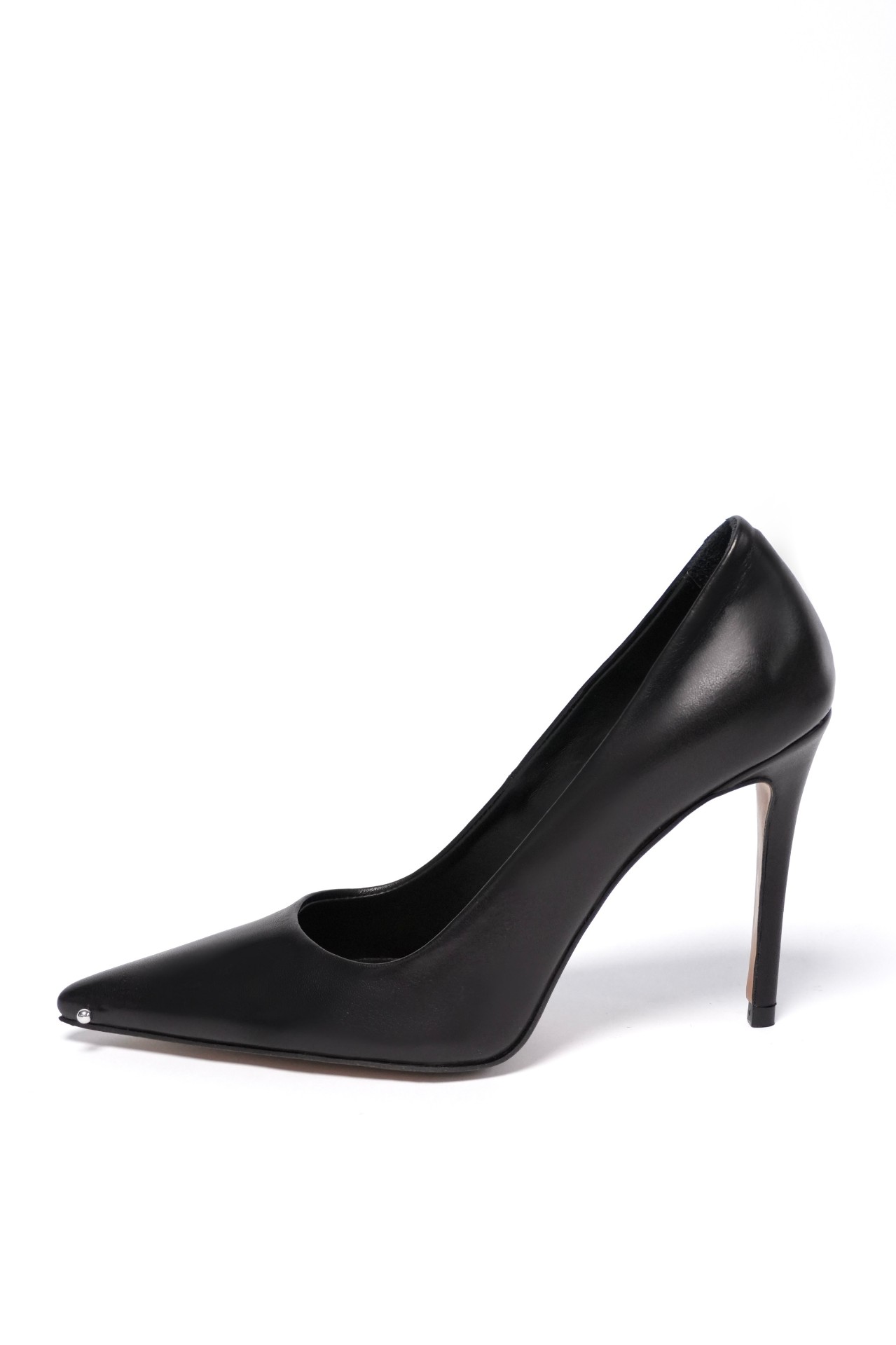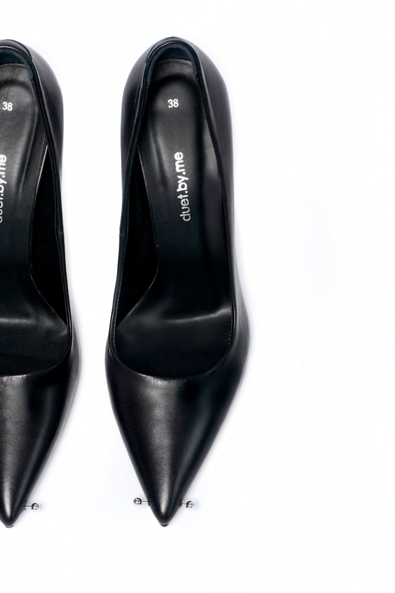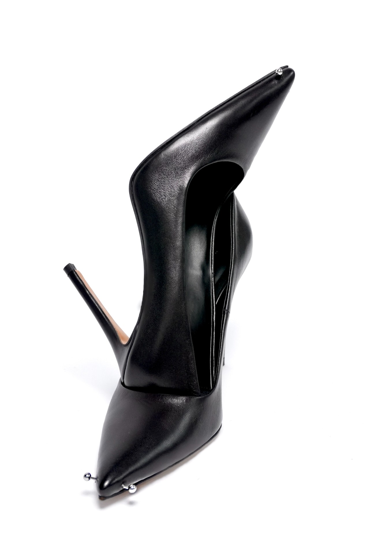 Кожаные черные лодочки на высоком каблуке шпильке с пирсингом носочной части