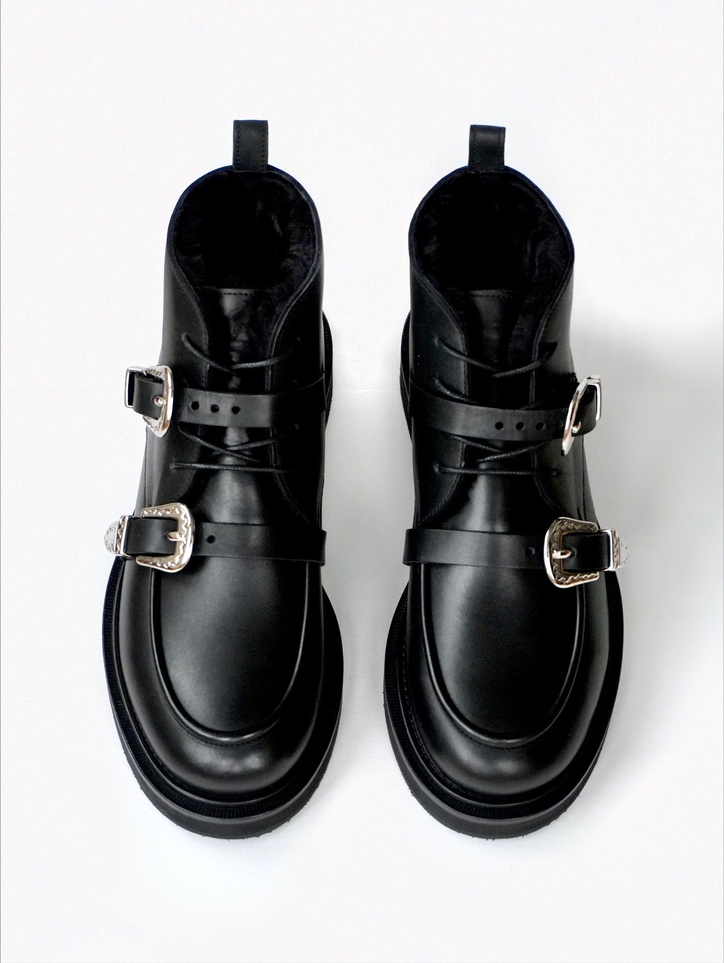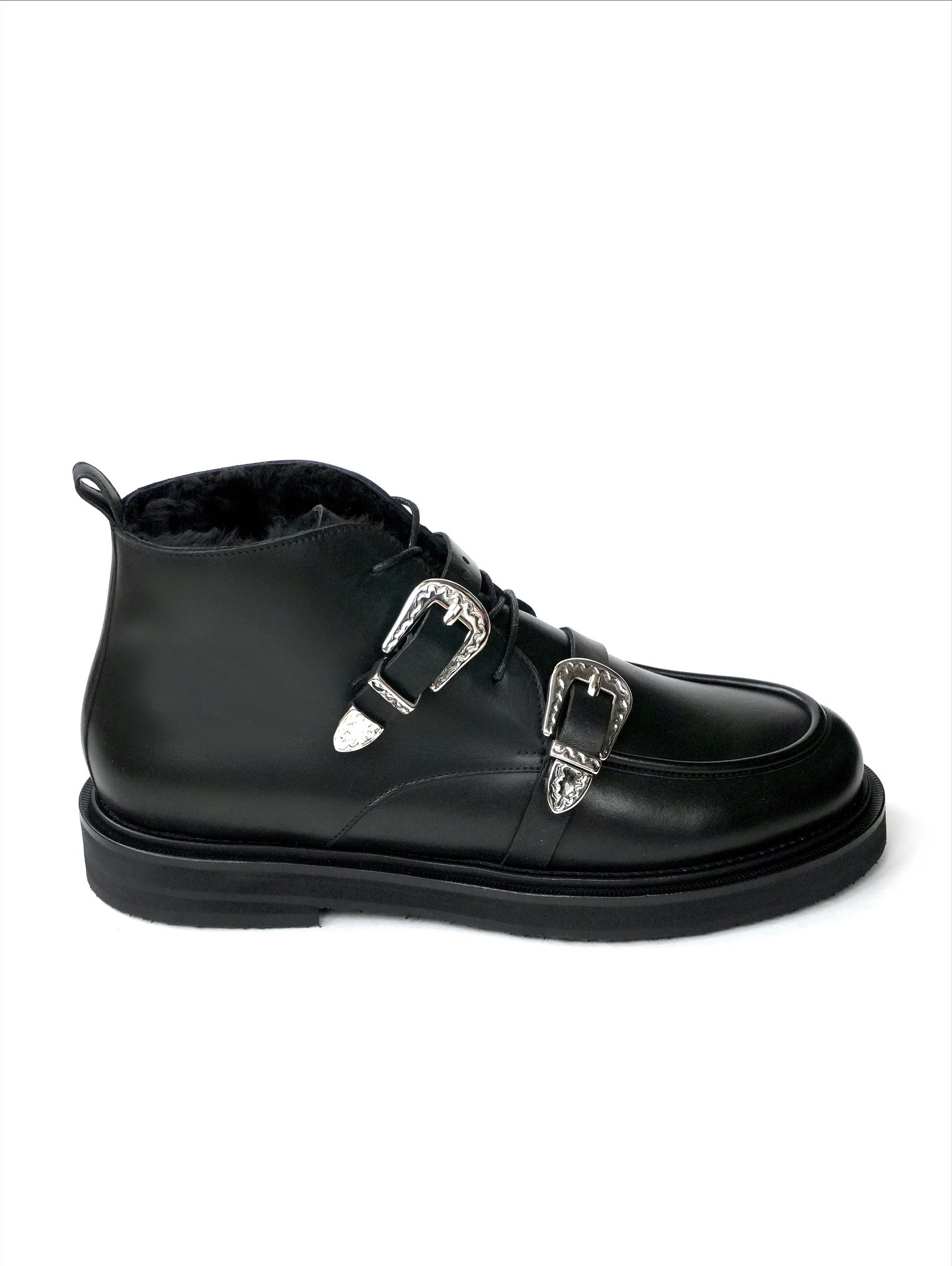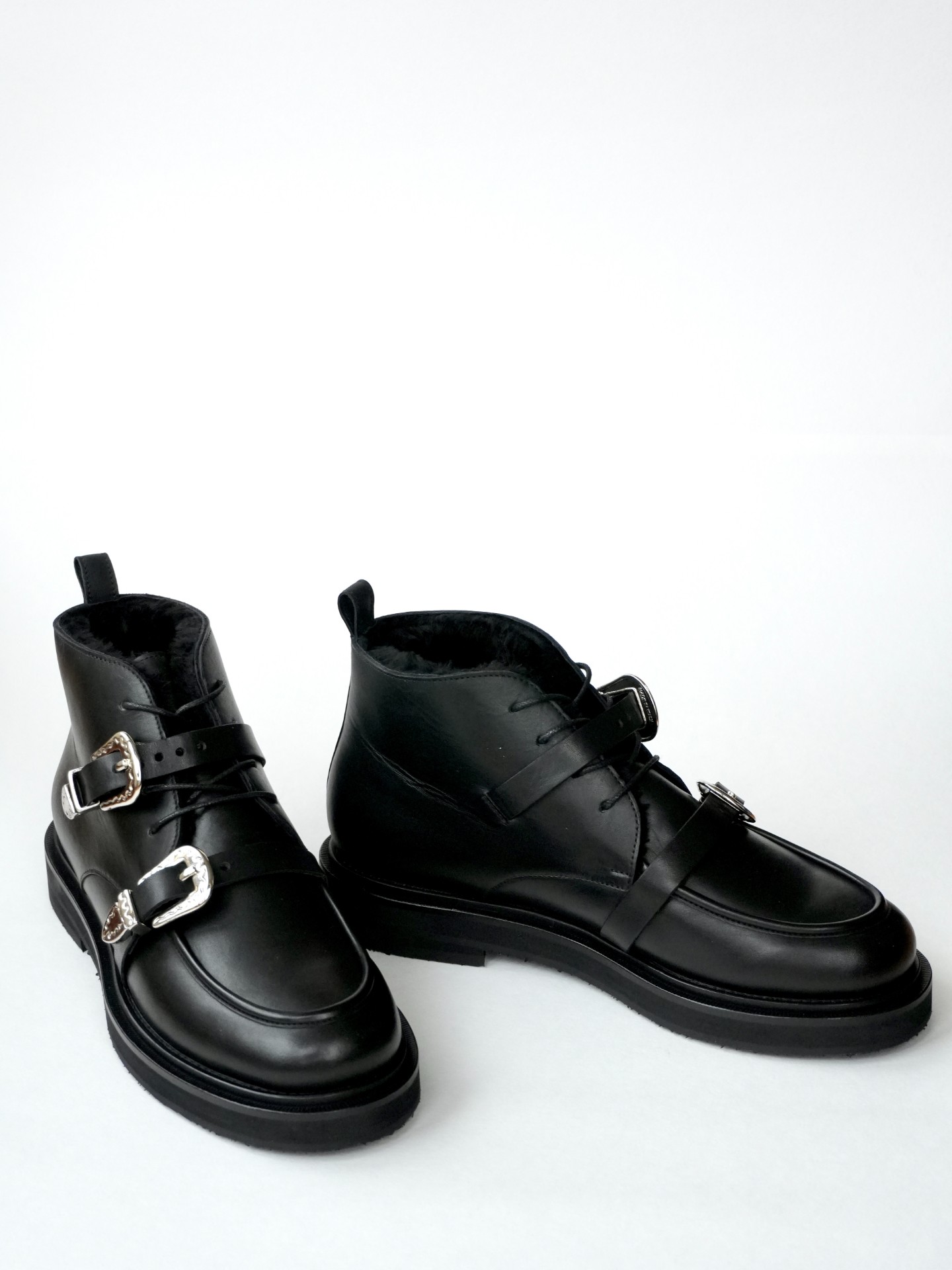 Укороченные ботинки на меху с пряжками