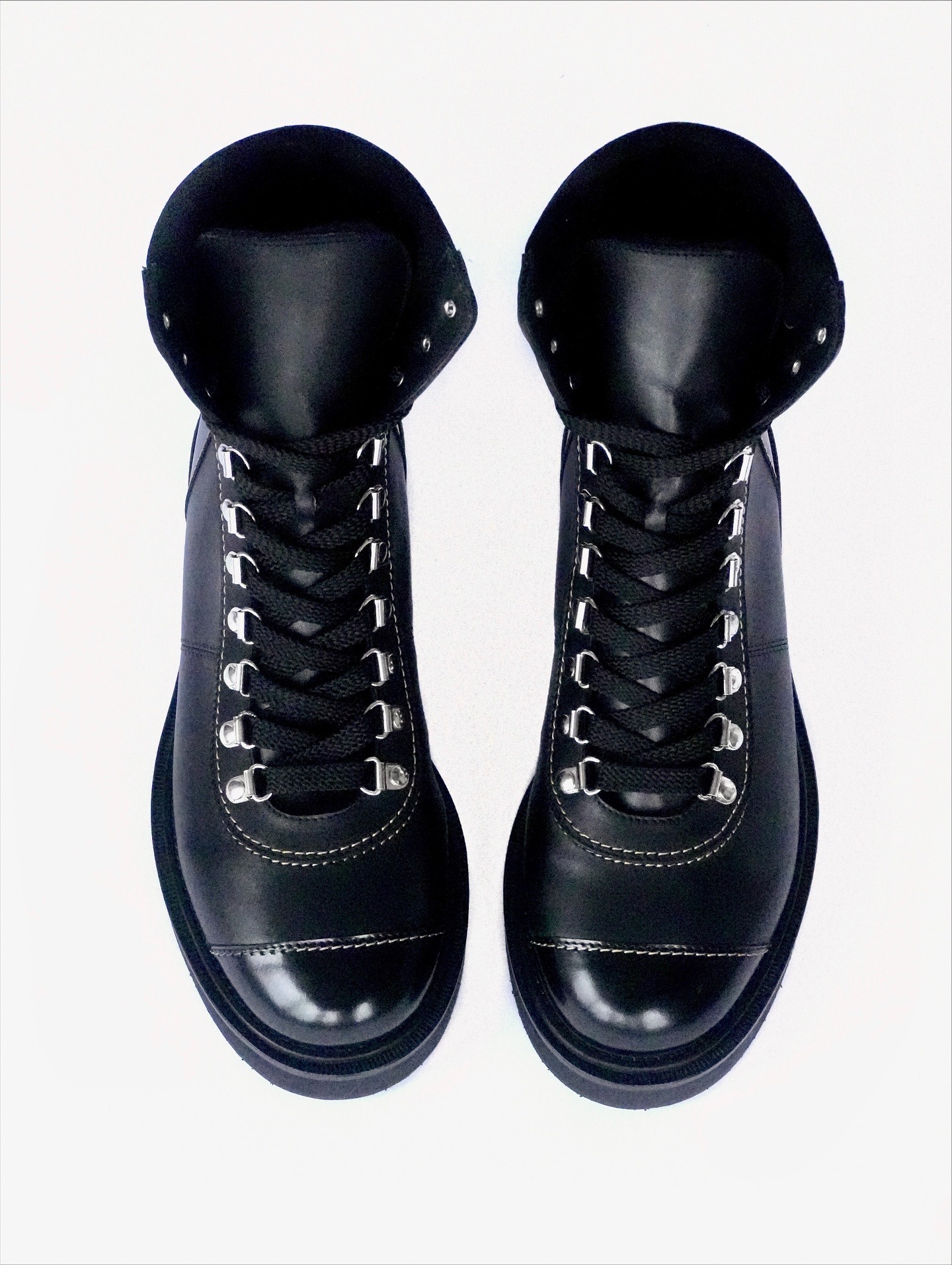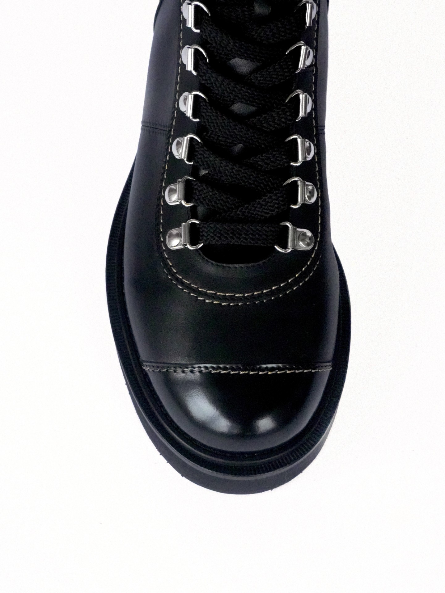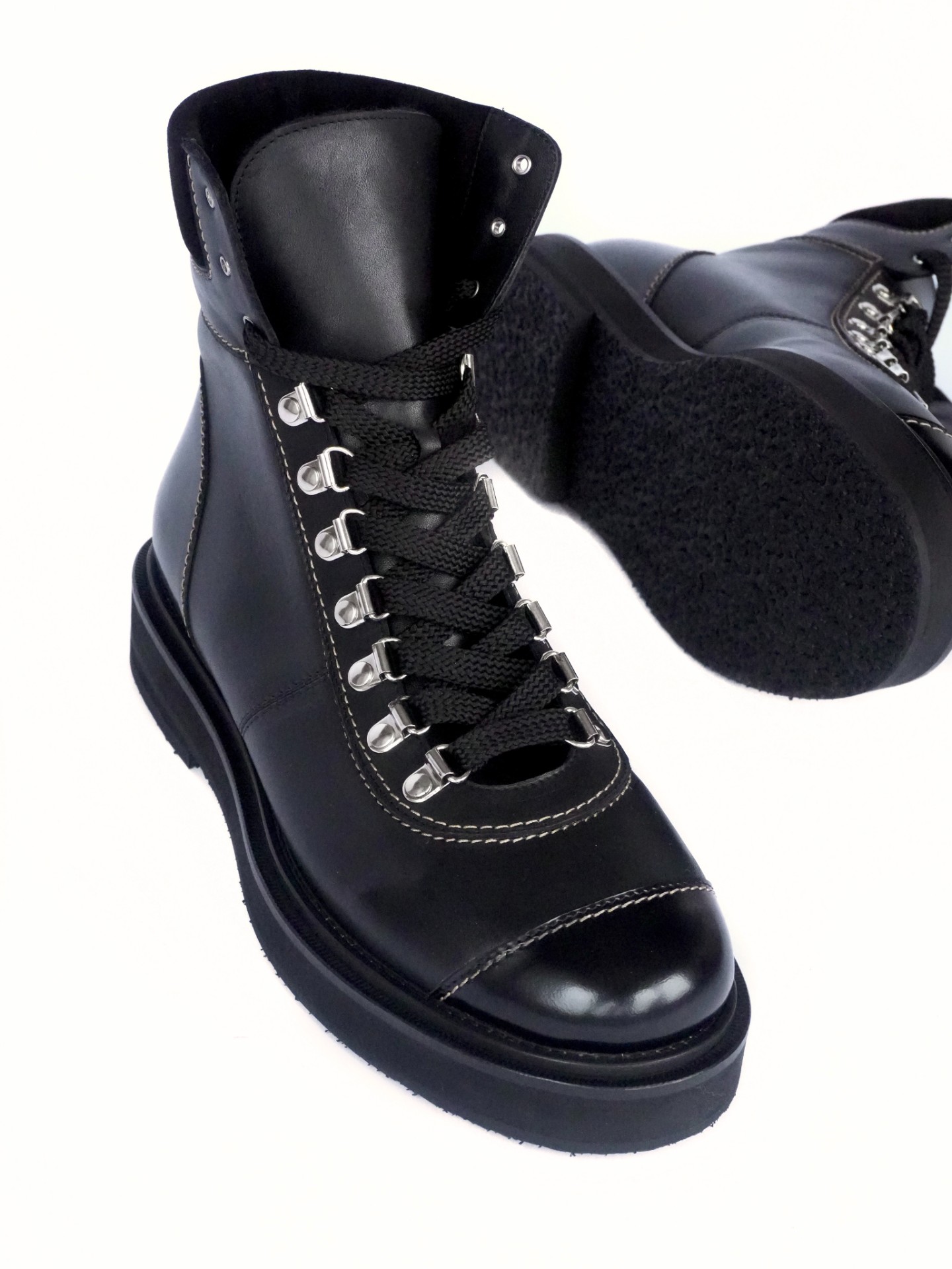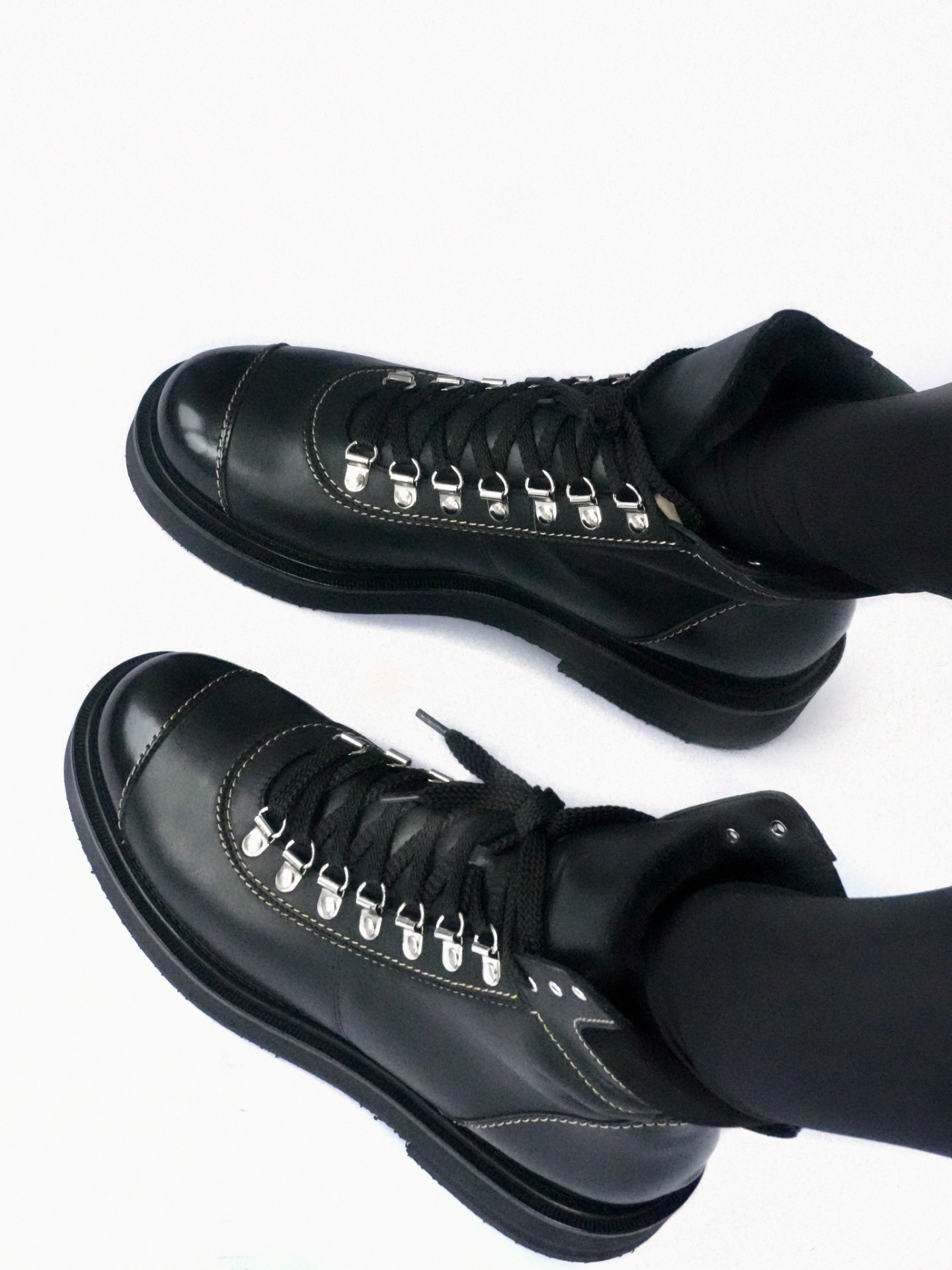 Кожаные ботинки хайкеры на меху с акцентными деталями из кожи полулак